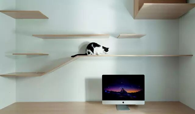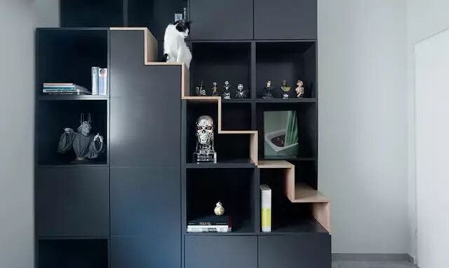 收纳柜不只摆放生活杂物,还能成为猫咪跳台!