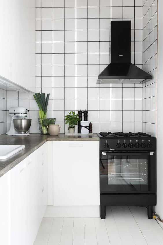 L型厨房的主要缺点是墙壁的一侧不可用。这就是为什么你需要按照你所拥有的最大空间来规划厨房。聪明地用设备或收纳架子来利用角落。这样一个厨房将是开放式布局的另一种选择,它以一种很好的方式与空间融合,或者你可以将其一部分成为自然的分区。