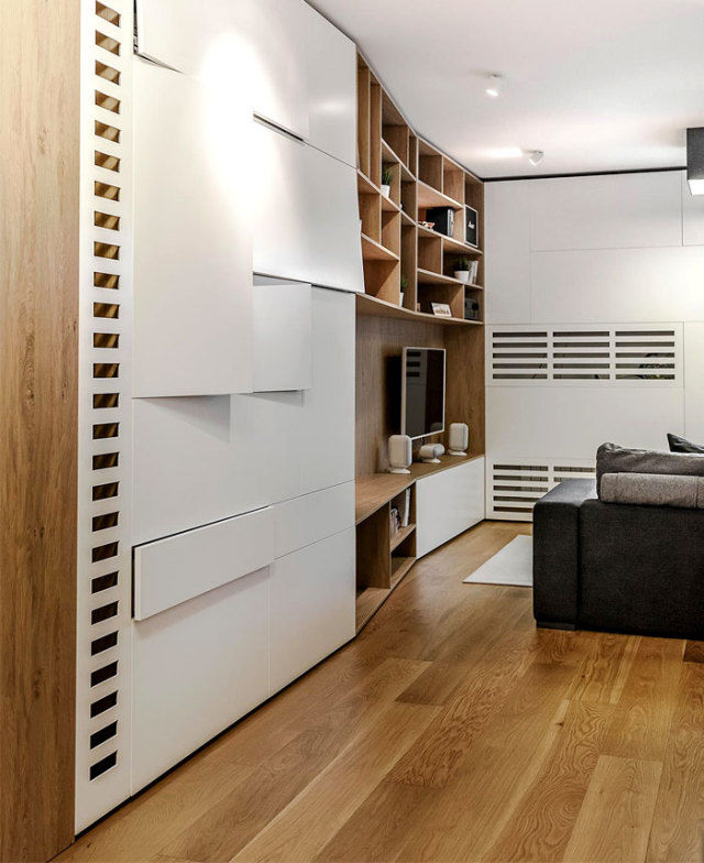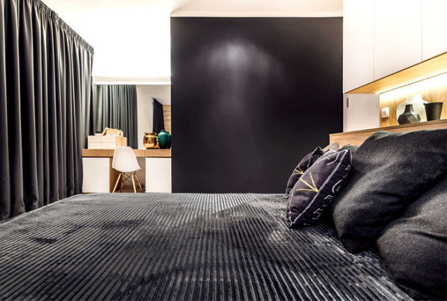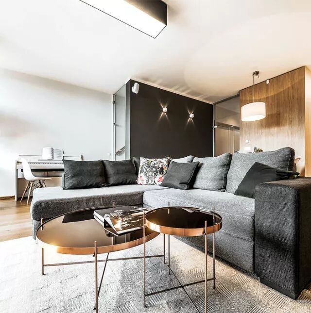 设计师采用丰富的想象力,处理狭窄原始建筑,用时尚的黑色和白色表面缠绕在华丽的木结构上,并添加独特的设计解决方案 - 如3D打印的龙灯,闪亮的铜元素和定制家具,完成了时尚的都市当中的家。