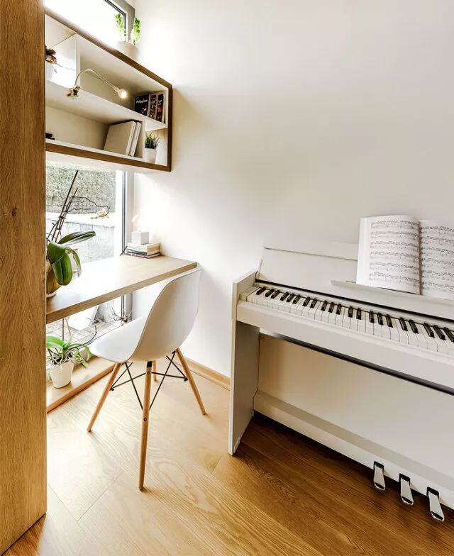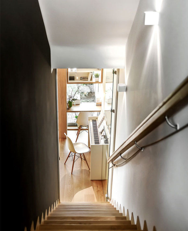 一楼有着社交区域,狭窄而长的厨房,可进入花园的客厅,小工作角(白色和优雅非常讨喜)和用餐区。在这里,设计师们使用美丽的木质包层和定制的内置家具,贯穿整个空间 - 从厨房的简单功能到艺术配饰,以及客厅的书架图书馆。