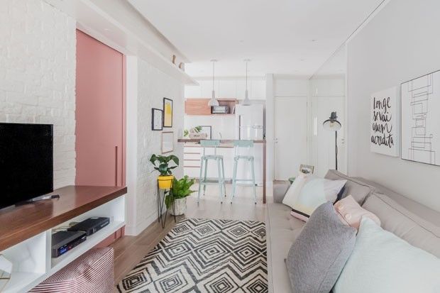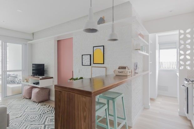 柔和色彩搭配白色的选择给公寓带来温柔的女性气质。