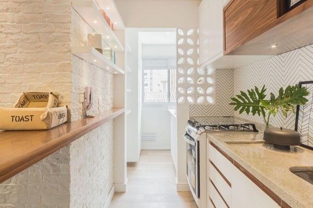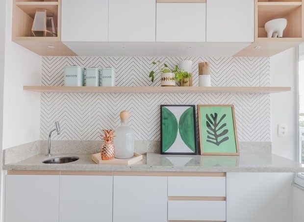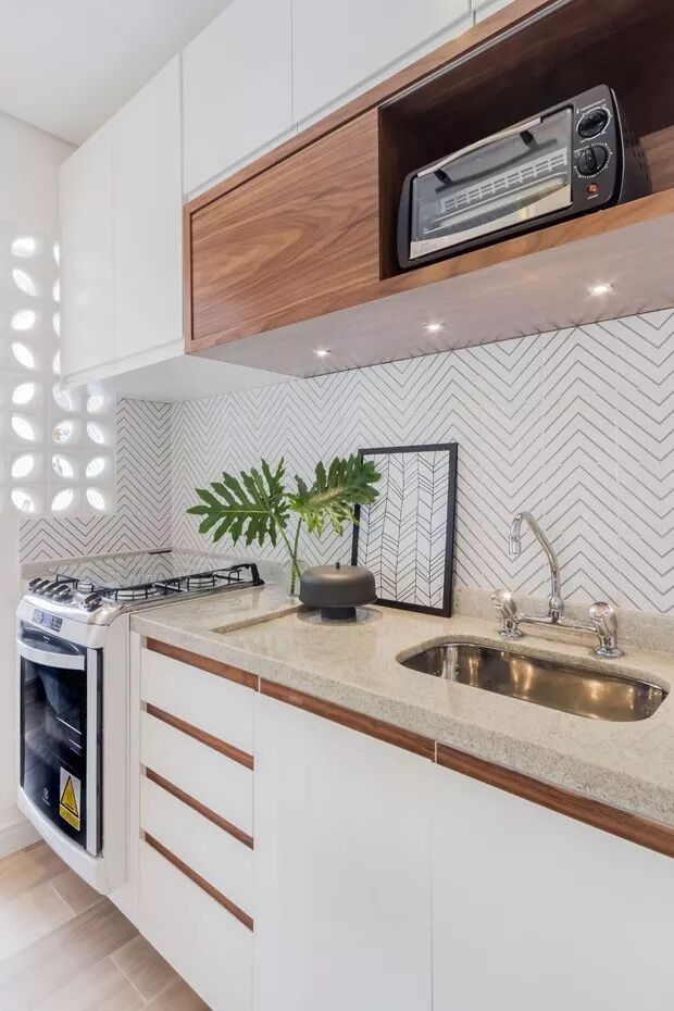 ▲ 厨房挡水板采用纹理的瓷砖