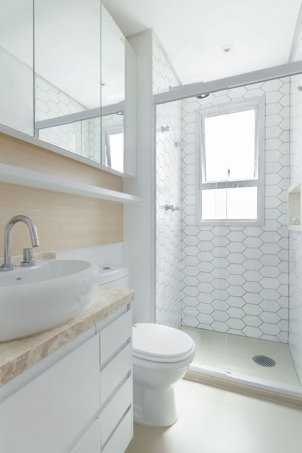 ▲ 浴室白色外加木纹理,让这里也很温馨