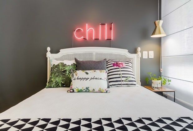 ▲ 卧室,霓虹灯做背景焦点