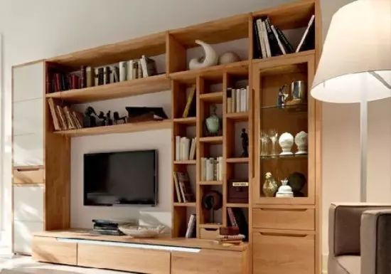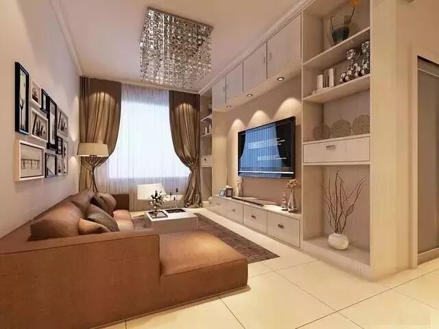 为了增加收纳空间,业主可以用储物柜来代替电视墙,这样既增加了收纳空间,又能节省了装修电视背景墙的钱,非常实用。