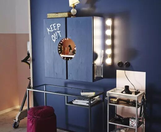 如果一块小的墙面,你打算用挂画装饰,那么不妨按照你的画框大小做一个小扁柜子挂墙上,然后再把画挂上去。同样的,卫生间的梳妆镜,那么也可以做成镜柜,用镜子做柜子的门即可。