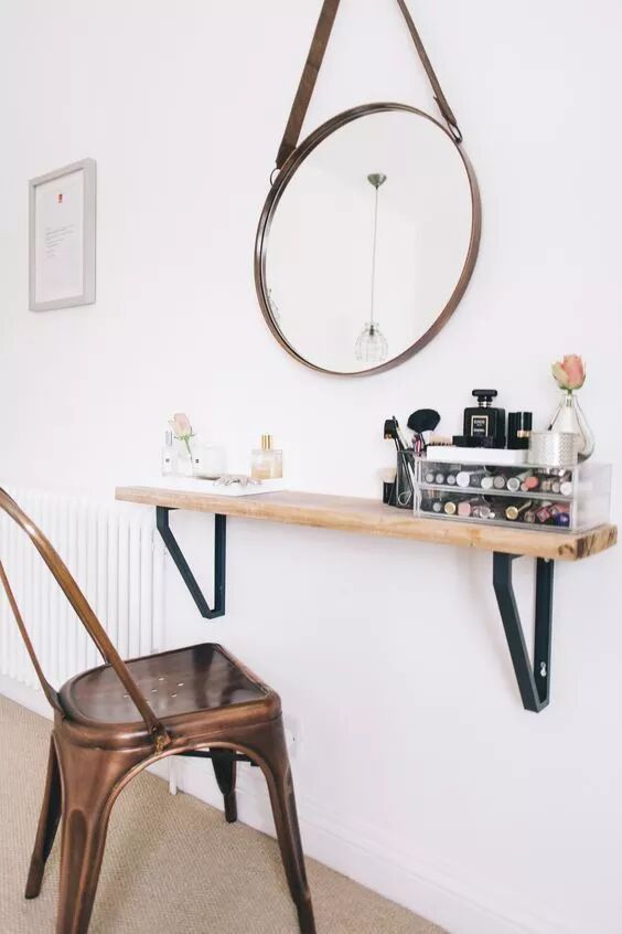 ▲ 如果你没有足够的空间,一个狭窄的木架子可以作为梳妆台