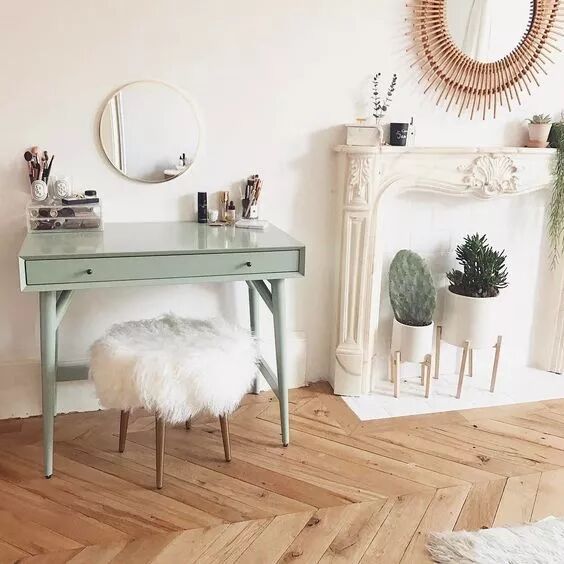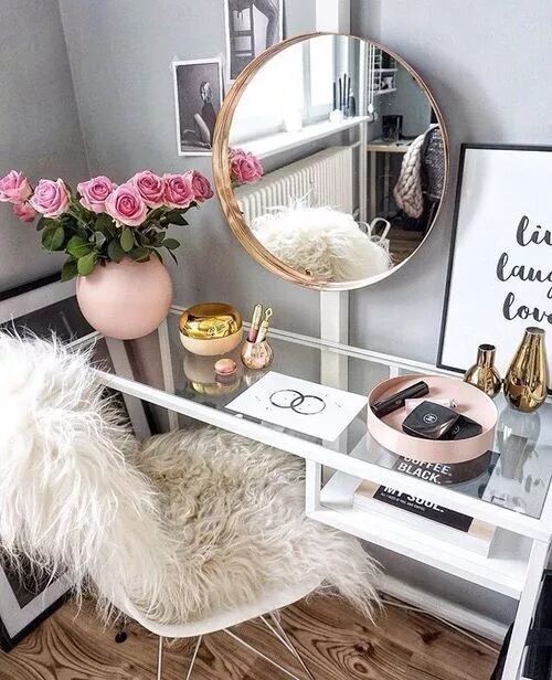 每个女孩都需要一个小的梳妆台,如果空间足够,也可以有个大的。这个角落应该让你使用起来更舒适,在这里,你可以快速有效地创造妆容。那么如何创造这样一个舒适的梳妆台角落呢?让我们来看看一些案例。