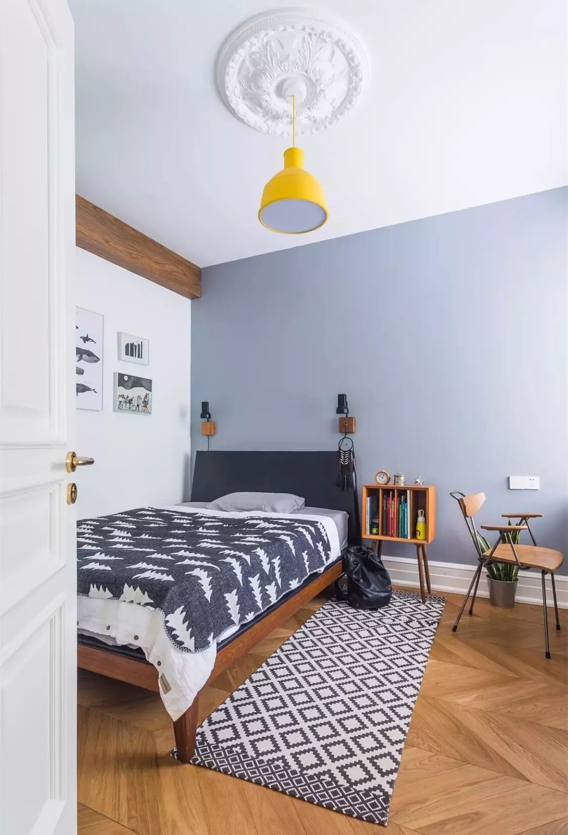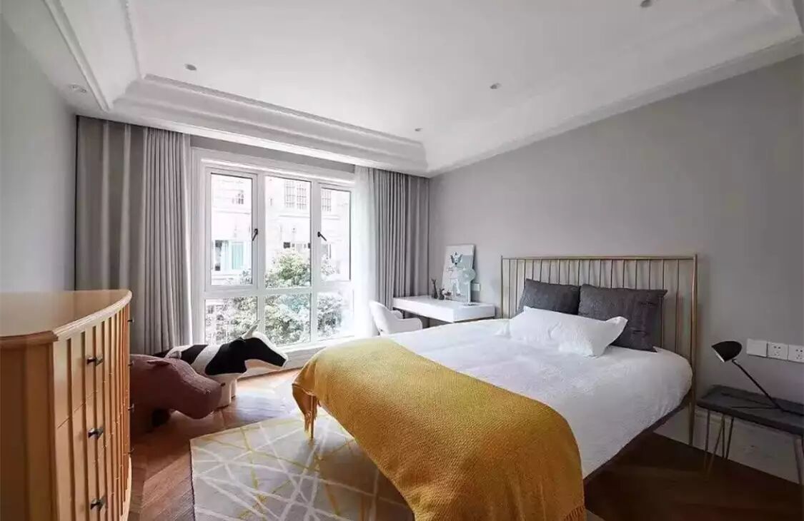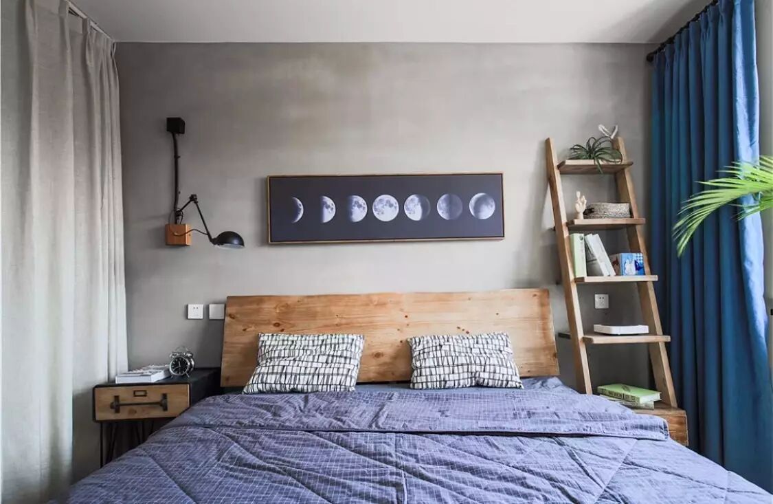 灰色作为简约时尚的经典色,非常耐看。不过灰色要刷得高级并不容易,这很讲究整体氛围的色调搭配,不然容易显得压抑,通常灰色墙面会搭配一些比较活跃的软装;所以用灰色墙面的卧室,可以在床单、窗帘等软饰采用比较活泼的色调。