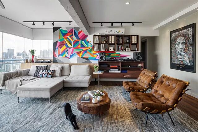 一个年轻,色彩缤纷,富有创意,超现代的房间,配有设计师家具,可以完美地补充装饰。在背景中有一个色彩缤纷的设计的墙壁给人一种欢快和现代的感觉,这是这种装饰的基础。厨房完全融入了餐厅,尽管它被选择使用的材料分开。地板采用同种材质,给人以延续的感觉,但在厨房里,主要的音调是黑色的,与房间不同,但是请注意,即使如此,环境也能够完美地交互并整合在一起!