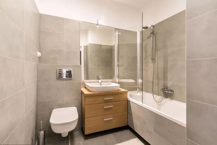 1、运用好灯光,壁镜顶部要装灯,这样即使在顶灯不开的情况下,镜前灯的光线也会很好地反射到四周的墙面,使卫生间有一种明亮的感觉;
